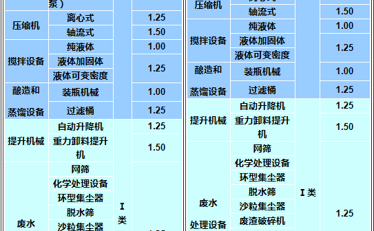 b.上表所列K值,其動力機為電動機和透平,若為其他動力機應考慮動力機系數Kw