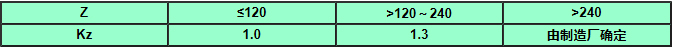 主動端起動頻率Z,形成附加載荷,其影響以起動系數Kz表示,見下表